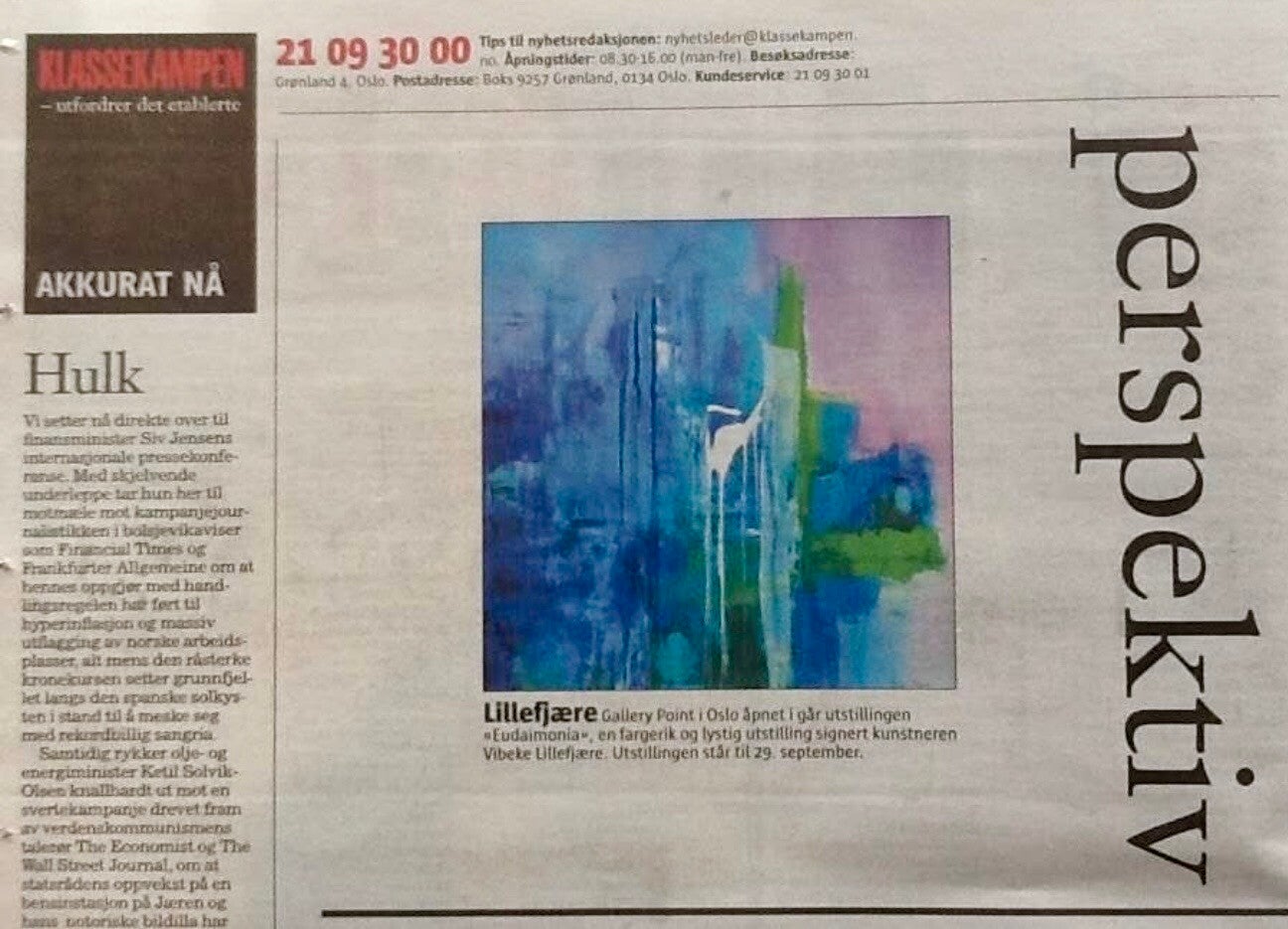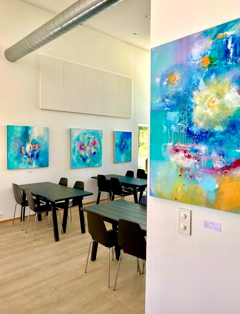 "Happy art" by Vibeke Lillefjære skaper trivsel på arbeidsplassen, som gave til ansatte gir kunsten glede ved jubileum og høytid, og entusiasme skapes når den blir overlevert ved åpning av nye prosjekter.