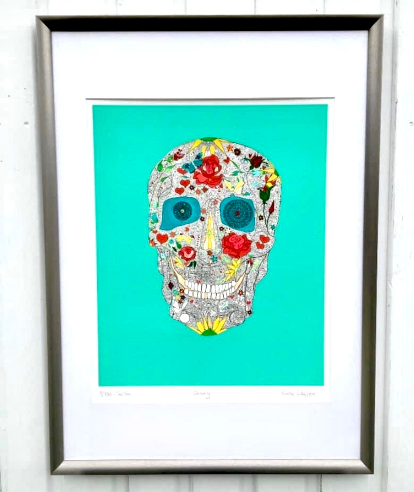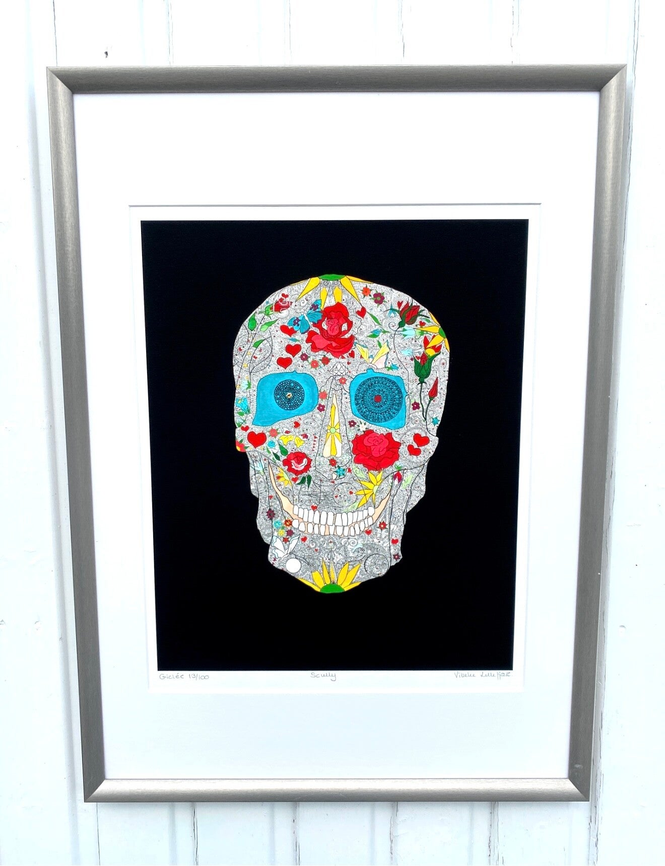 Jeg har valgt å tilby to faste størrelser, det er ramme størrelse 30x40 cm og ramme størrelse 50 x70 cm. Jeg leverer også enkelte motiv i ramme størrelse 40x40 cm og 50x50 cm, samt dødningskallen Scully som også leveres i luxus ramme i størrelse 80x80 cm.